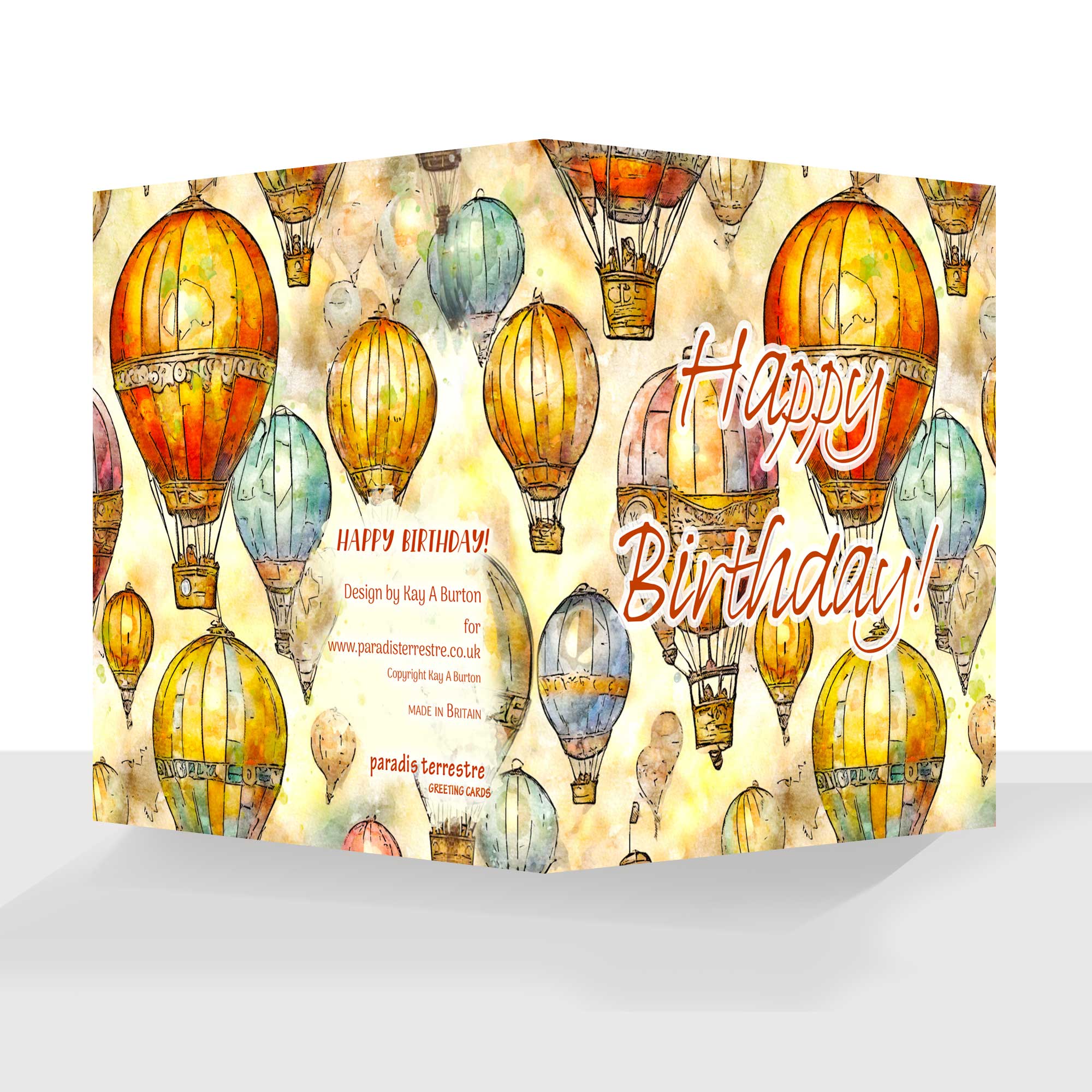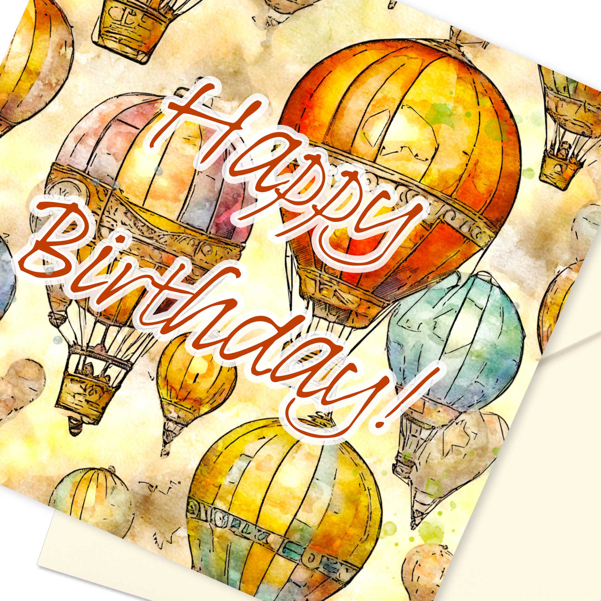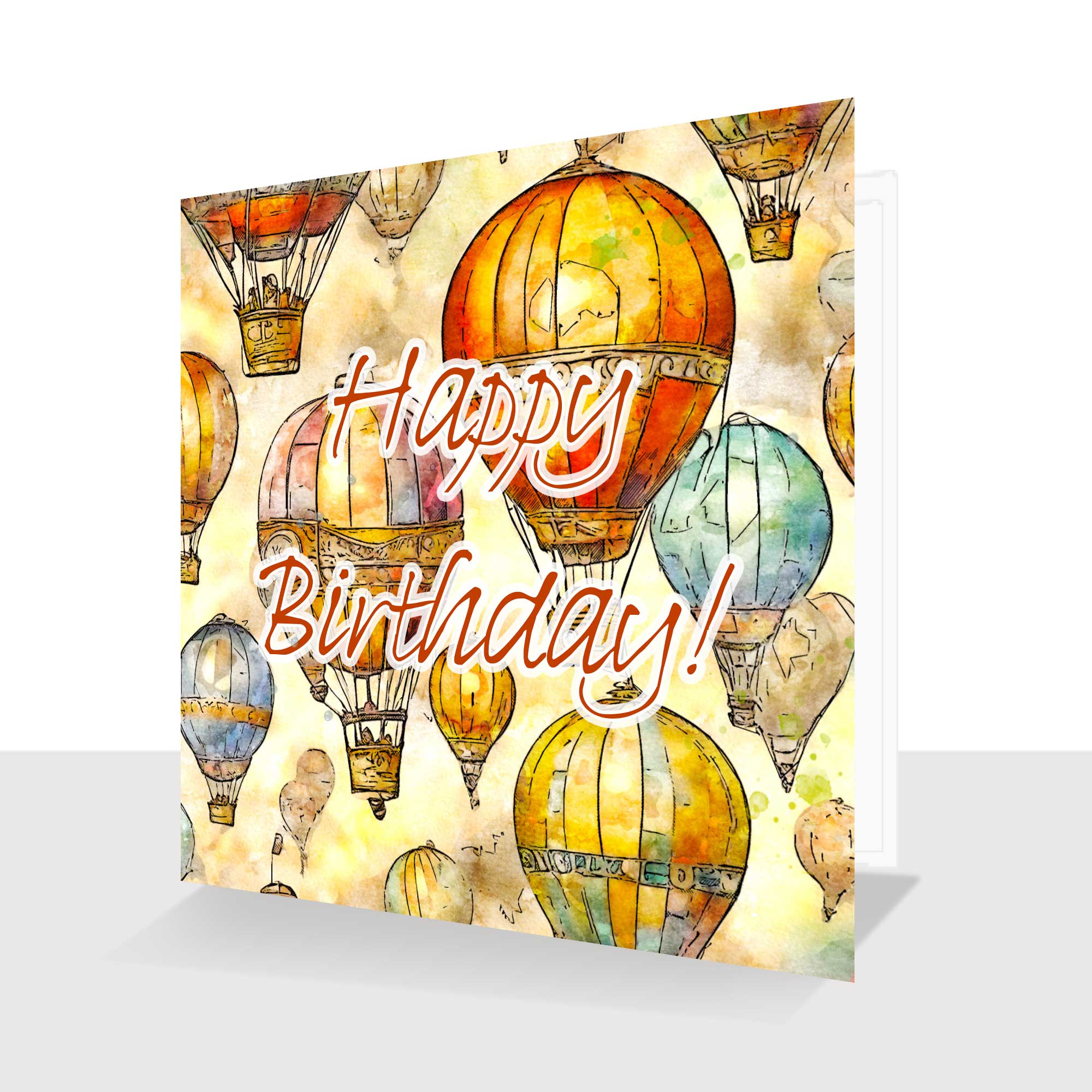 Celebrate a special day with the thrill and energy of the hot air balloon! This stunning birthday card captures the spirit of ballooning in a burst of vivid watercolour hues. Perfect for ballooning enthusiasts this card embodies the excitement and elegance of the sport.