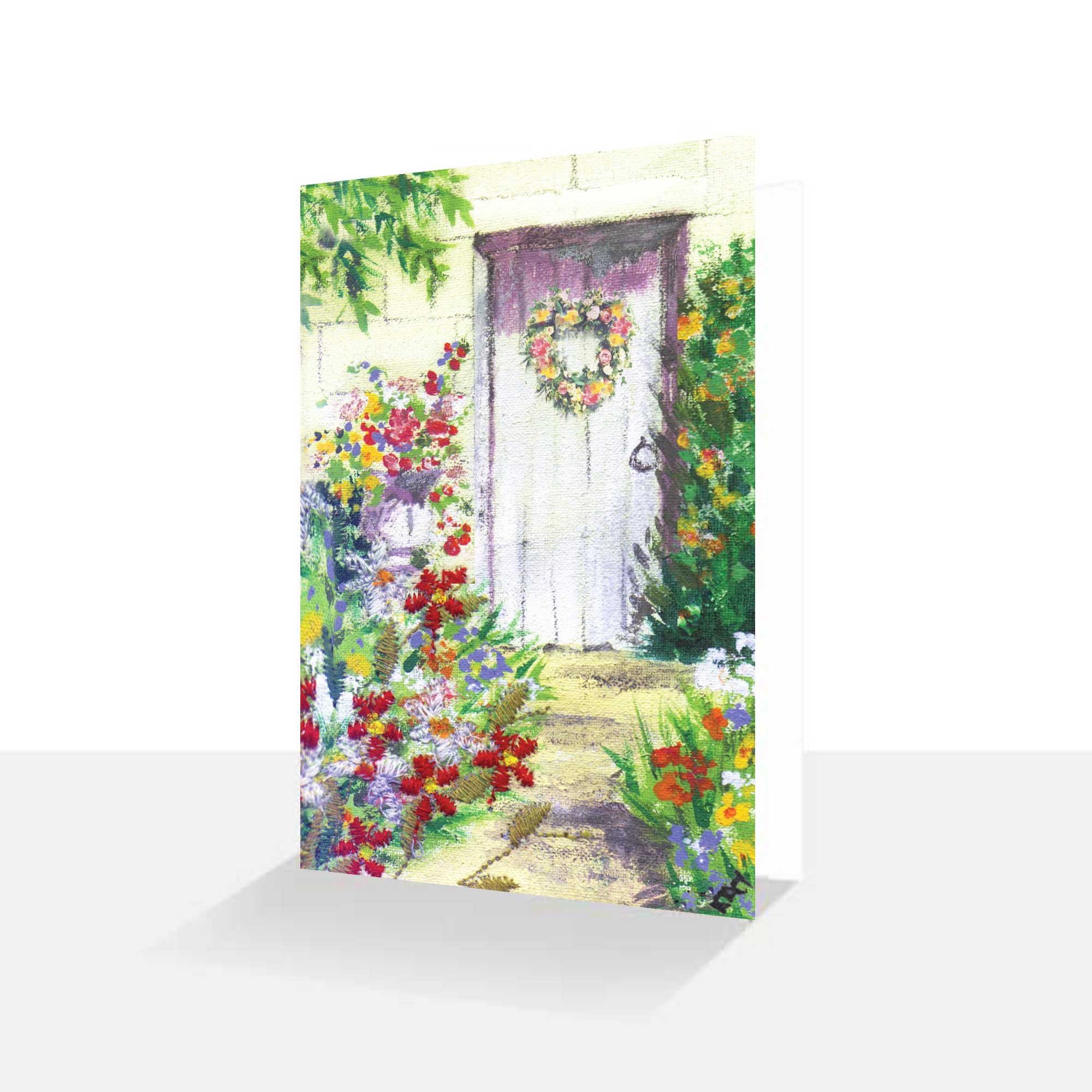 Three assorted designs, Summertime, Garden Door and Floral Heart taken from a painted textile pictures by artist Kay Burton. Printed on to quality textured white board (FSC rated card)